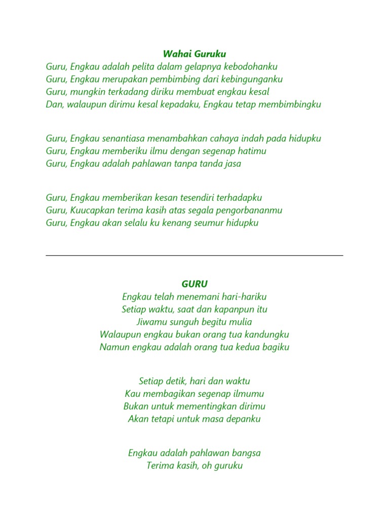 Puisi Buat Guru from imgv2-2-f.scribdassets.com Kumpulan puisi untuk guru tercinta paling lengkap 2018. Terima kasih untuk jasamu ***** guru lenteraku guru lenteraku ***** ( oleh : Kala pagi masih begitu berembun dinginnya udara menusuk tulang dia berjalan dan berpikir akan keberhasilan merenung tentang kesuksesan.
