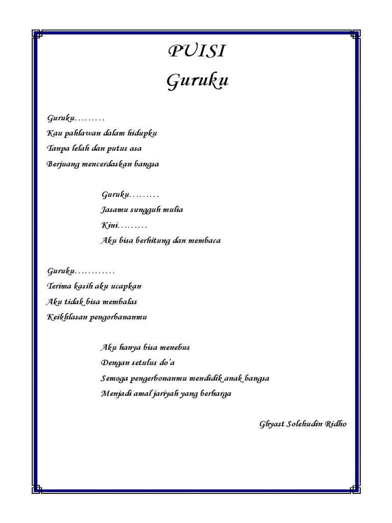 Get Puisi Tentang Guruku Background. Mereka memberikan berbagai macam bekal ilmu pengetahuan, pendidikan dan juga akhlak bagi setiap muridnya sebagai bekal menjalani setiap kehidupan. Cocok untuk puisi hari guru nasional dan perpisahan.