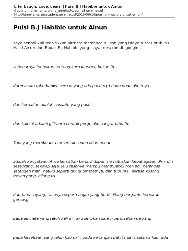 Life Laugh Love Learn Puisi B J Habibie Untuk Ainun