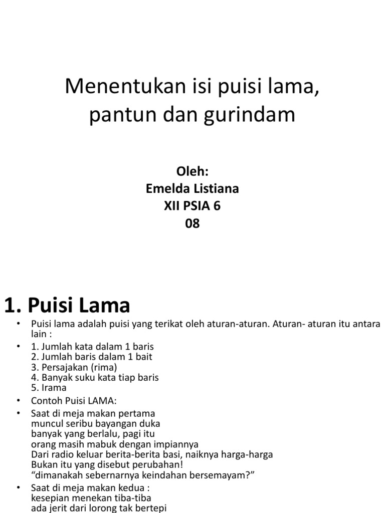Menentukan Isi Puisi Lama Pantun Dan Gurindam